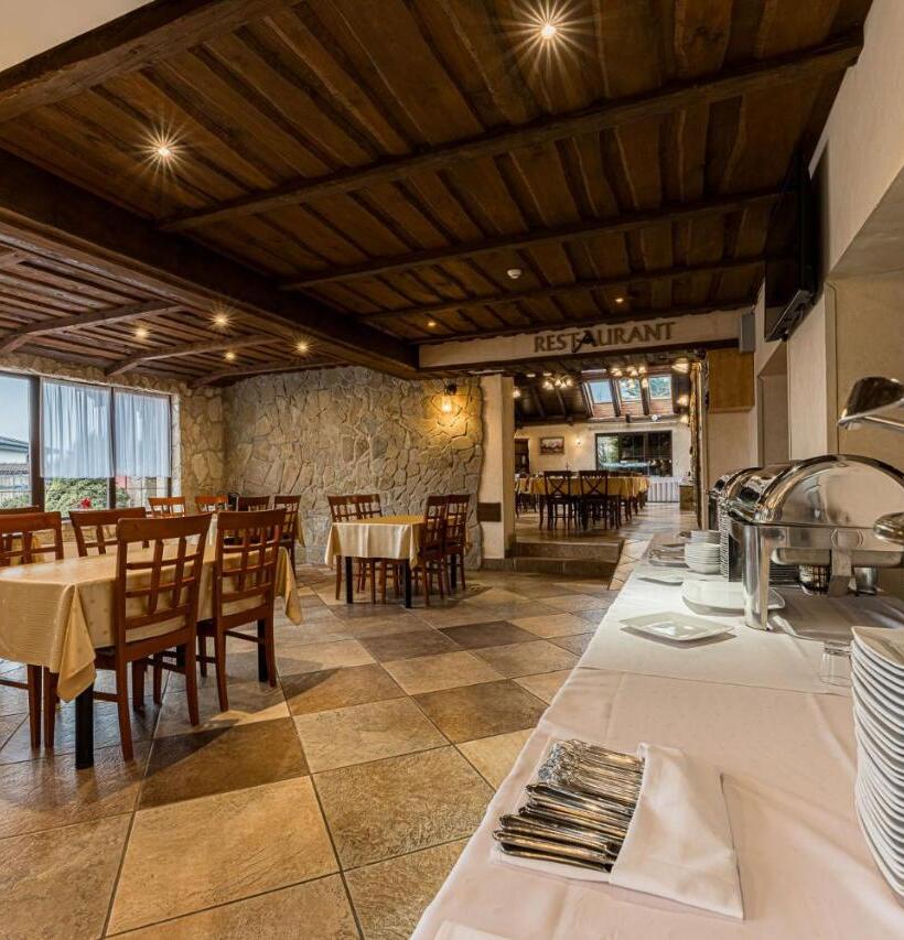 V našej štýlovej reštaurácii podávame raňajky a večere formou bufetových stolov. Počas zimných mesiacov si môžete vychutnať jedlo pri kozube, zatiaľ čo v lete odporúčame posedieť na vonkajšej terase s panoramatickým výhľadom na Tatry. Návšteva našej kaviarne, kde si môžete dopriať taliansku kávu Manuel, je ideálnym spôsobom, ako si oddýchnuť v príjemnom prostredí.